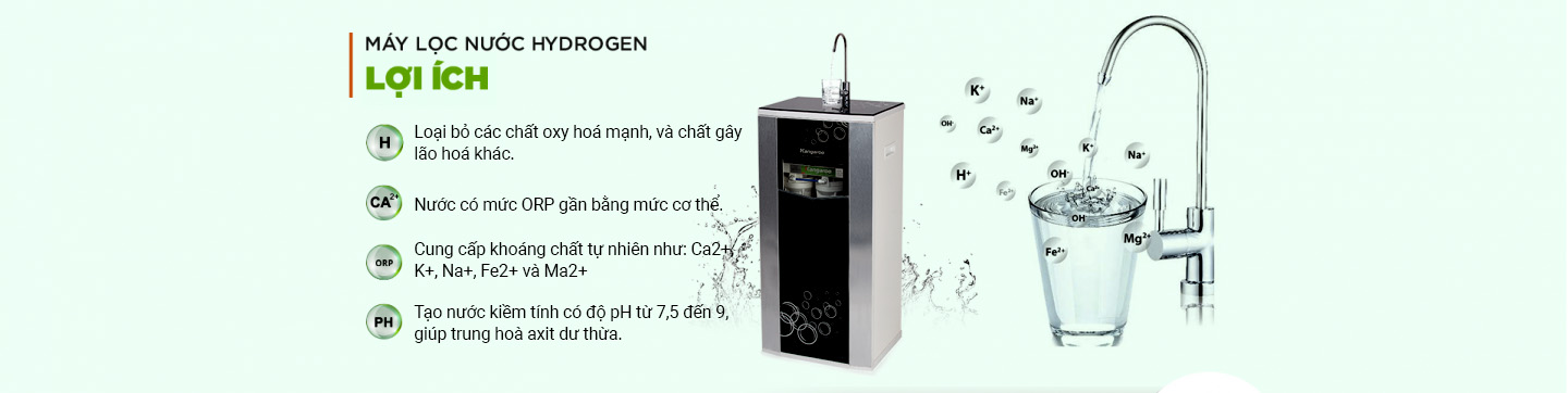 Nước kiềm Hydrogen đã được thế giới biết đến bởi công dụng kháng oxy hóa của nó. Hydrogen ở dạng hoạt hóa có tác dụng trung hòa các chất oxy hóa, các gốc tự do và các chất gây lão hóa, nhờ đó hỗ trợ giữ gìn sức khỏe, tăng cường thể lực. Sử dụng nguồn nước được lọc qua máy lọc nước Kangaroo Hydrogen là cách tốt nhất để đảm bảo được sức khỏe và giảm thiểu rủi ro bệnh tật do gốc oxy hóa tự do trong cơ thể gây nên.
